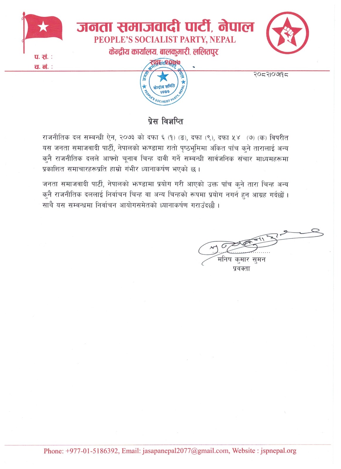 जसपा नेपालले भन्यो- पाँचकुने तारा अन्य दलले दाबी नगरुन्