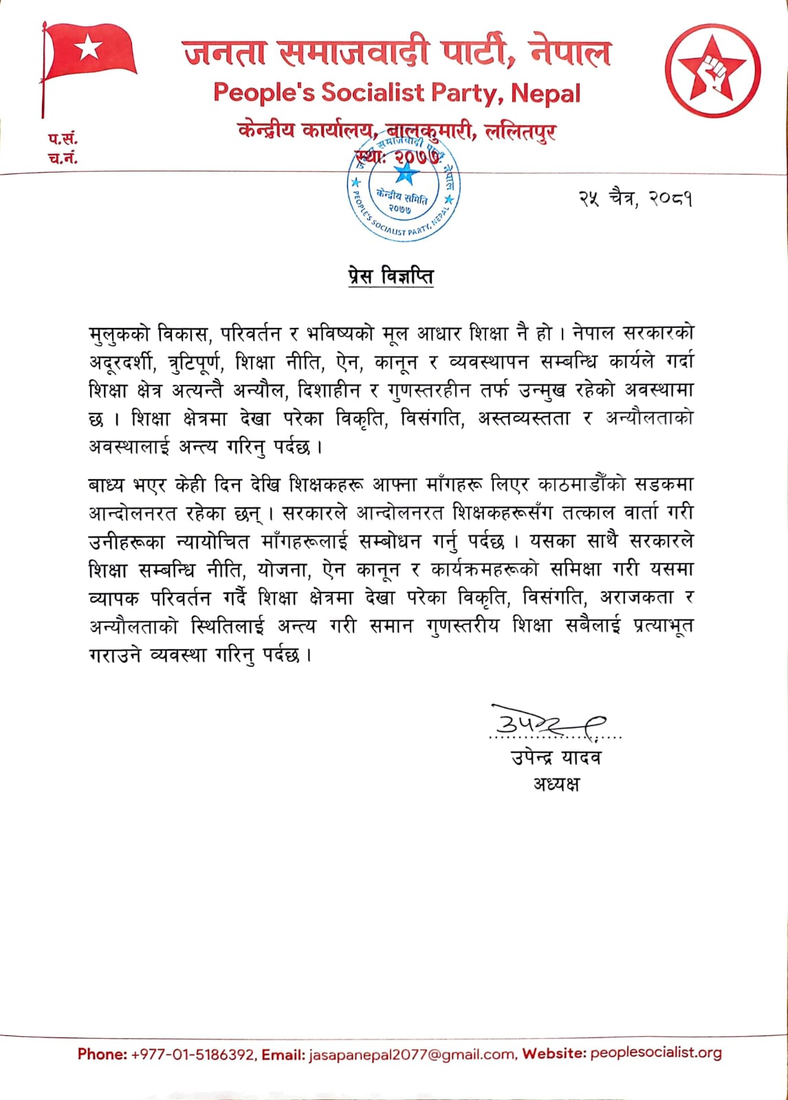 प्रेस विज्ञप्ति
