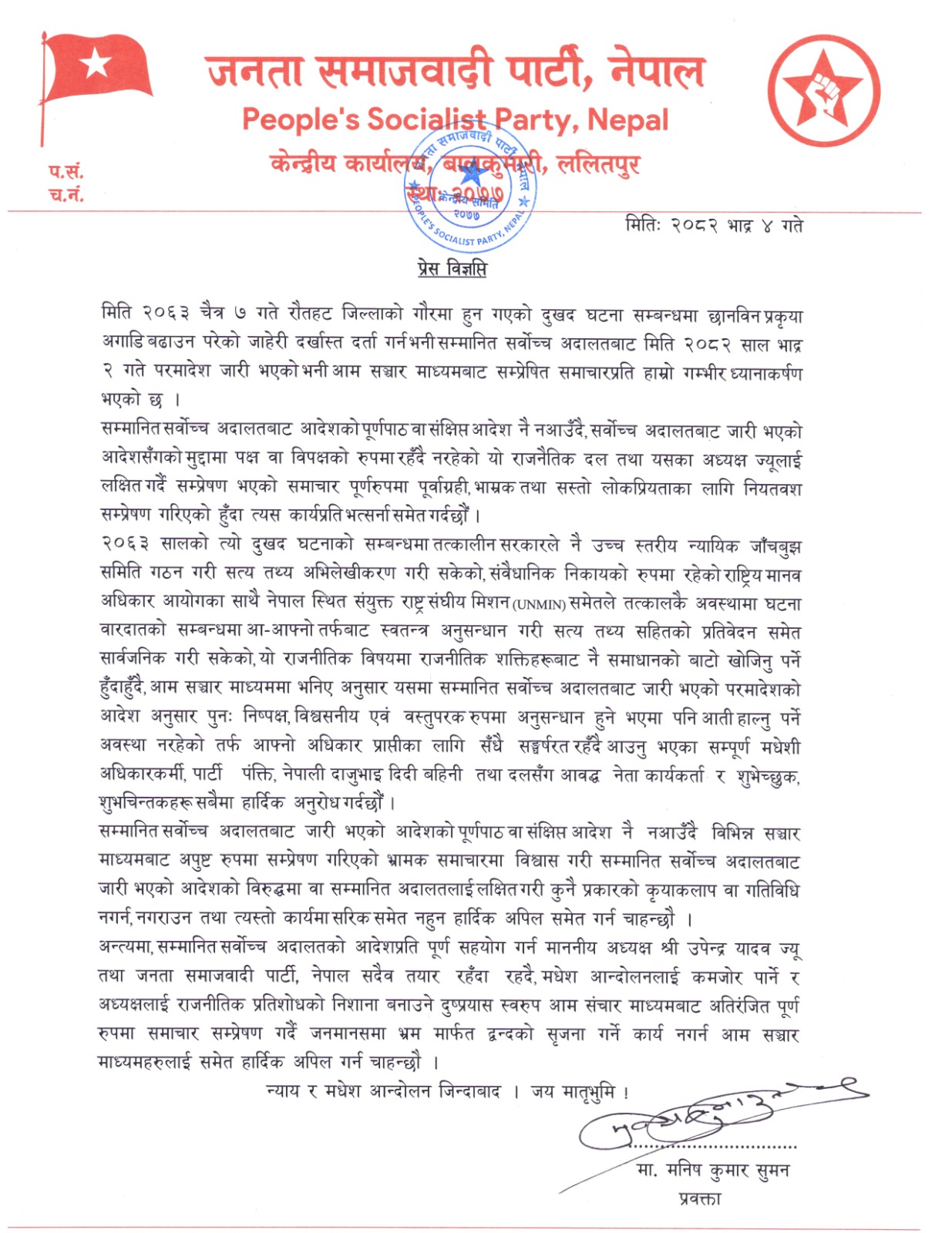 जनता समाजवादी पार्टी, नेपालको लेखापरीक्षण प्रतिवेदन (आय–व्यय) २०८१/०८२ सार्वजनिक